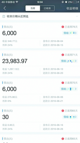 前天下午,记者在汉口黄浦路见到了小王和他的同学小李。小王心事重重地拿出了一摞打印出来的“借出协议”。据他介绍,大二时,他开始兼职。去年“借贷宝”特别火,他了解得知它是网上借贷平台,俗称“P2P”。他经过朋友介绍,去年9月开始兼职做借贷宝的用户推广,对这个平台有了一定了解。今年3月份,他尝试在借贷宝上借出第1笔钱给一位姓宋的用户,约定1个月到期,年利率为24%。1个月后,小王25000元本金收到了25493元还款,一个月就净赚了约500元钱。