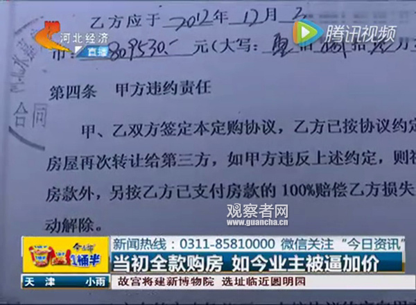 石家庄一开发商卖房4年后觉得亏了 每平加收6000元