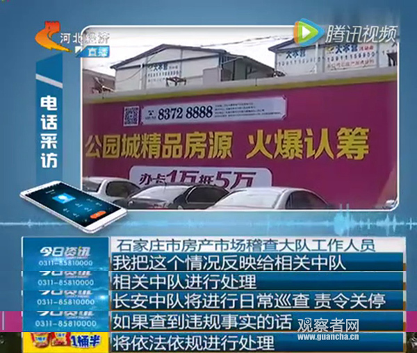 记者把情况反映给石家庄房产市场稽查大队工作人员,工作人员表示,已责成相关中队处理,长安中队将进行日常巡查,责令关停。如果查到违规事实的话,将依法进行处理。