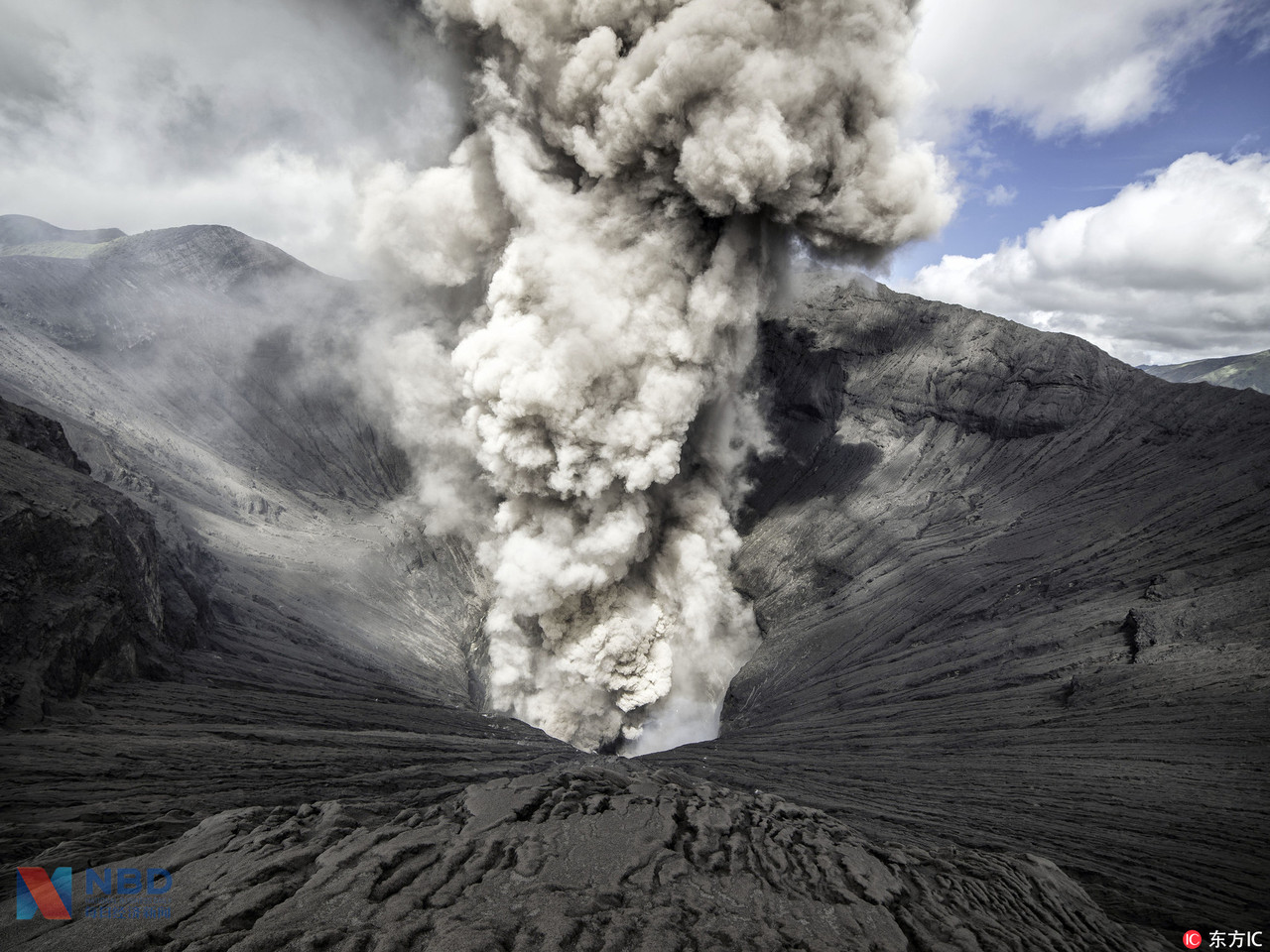 摄影师玩命拍婆罗摩火山喷发 烟尘翻涌场面震撼