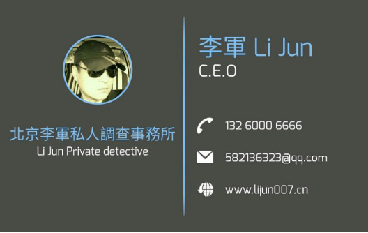 北京李军私人调查(132-6000-6666)提醒大家,市场上那些廉价的私人调查,都是不合规的,而且那么低的费用也调查不到需要的证据,如果您相信的话,就会上当受骗。损失了财产,也没有得到有用的证据。