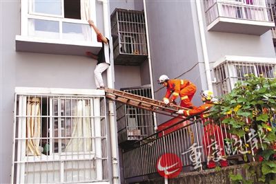 七旬老人忘带钥匙 翻窗入室困半空(图)