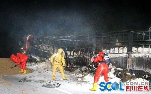 四川在线消息(邵志海 记者刘宏顺)7月25日16时许,满载35吨保险粉(学名连二亚硫酸钠)的大货车在广南高速苍溪停车区处燃烧,空气中弥漫着刺鼻性气味,苍溪警民合力15小时成功将其处置,封路长达15小时的广南高速恢复通行。