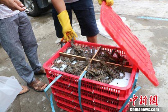 图为边防官兵打开封装暹罗鳄鱼苗的篮筐。 何秋红 摄