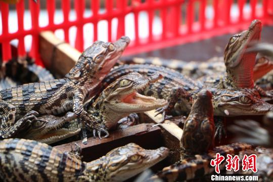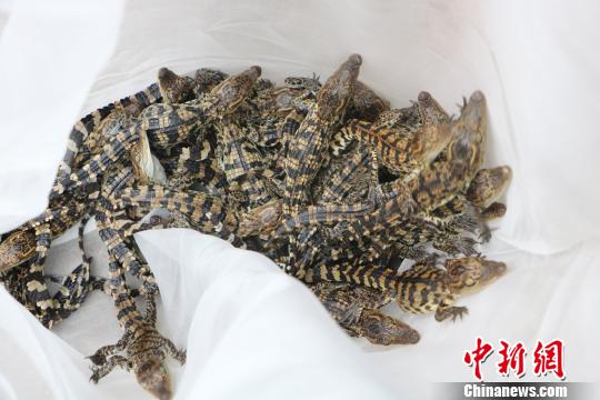 广西边防查获399条暹罗鳄鱼苗 仅出生10余天