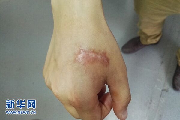 被打者陈刚头部伤口6.5厘米,清晰可见。