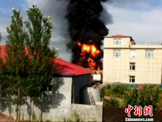 黑龙江佳木斯一储油罐起火 现场浓烟滚滚(图)
