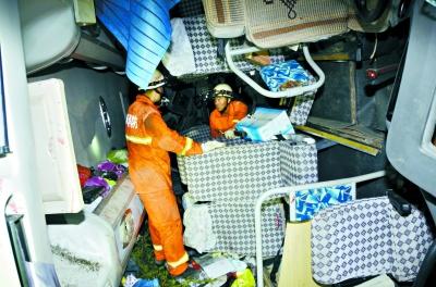消防员在事故车辆中搜救(8月20日摄)。8月20日晚,贵州安顺市紫云县境内发生一起交通事故,截至记者发稿时,事故已造成10人死亡,10人受伤。目前事故原因正在调查中。新华社发