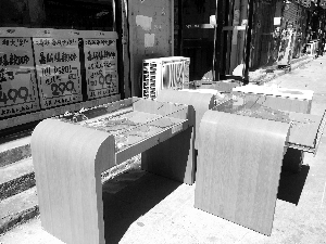 昨天上午,北京晨报记者沿着半截塔村南侧入口进入商业街,看到路西侧沿途的4家手机店门口,摆放着前一天夜里被砸的柜台(如图)。