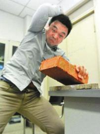 “我那时候上‘工程实践’课,为了让学生更直观了解科学的力量,鼓励他们平时学以致用,就想了这么个办法。”说起当年的经历,魏骁勇挠了挠头,有点羞涩,“其实这是个简单的物理原理,是桌子把砖劈开了。”