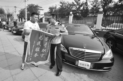 车主给民警送上锦旗。京华时报记者赵思衡摄