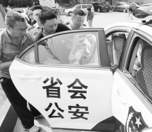 ■将肇事司机抬下警车。