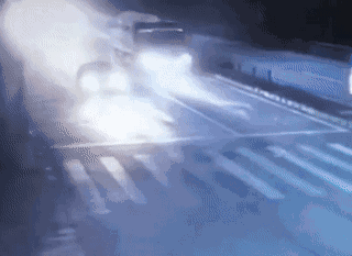 第三辆肇事的大卡车更别说了,看来也想冲闯红灯,根本没刹车的意图,被实道并线的小车晃了一下,发生侧翻。