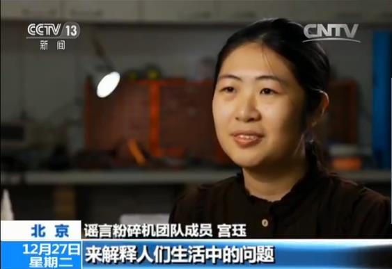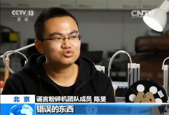 谣言粉碎机团队成员陈旻:我们并不希望谣言只是“止于智者”,而止于你和我,因为只是止于智者的话,大家都会去等着智者来出现,我们希望破解谣言的这个过程由公众来参与,由大家一起来做这个事情。