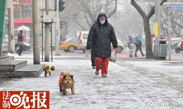 北京城区飘雪 气象局:出行尽量打伞 雪很脏